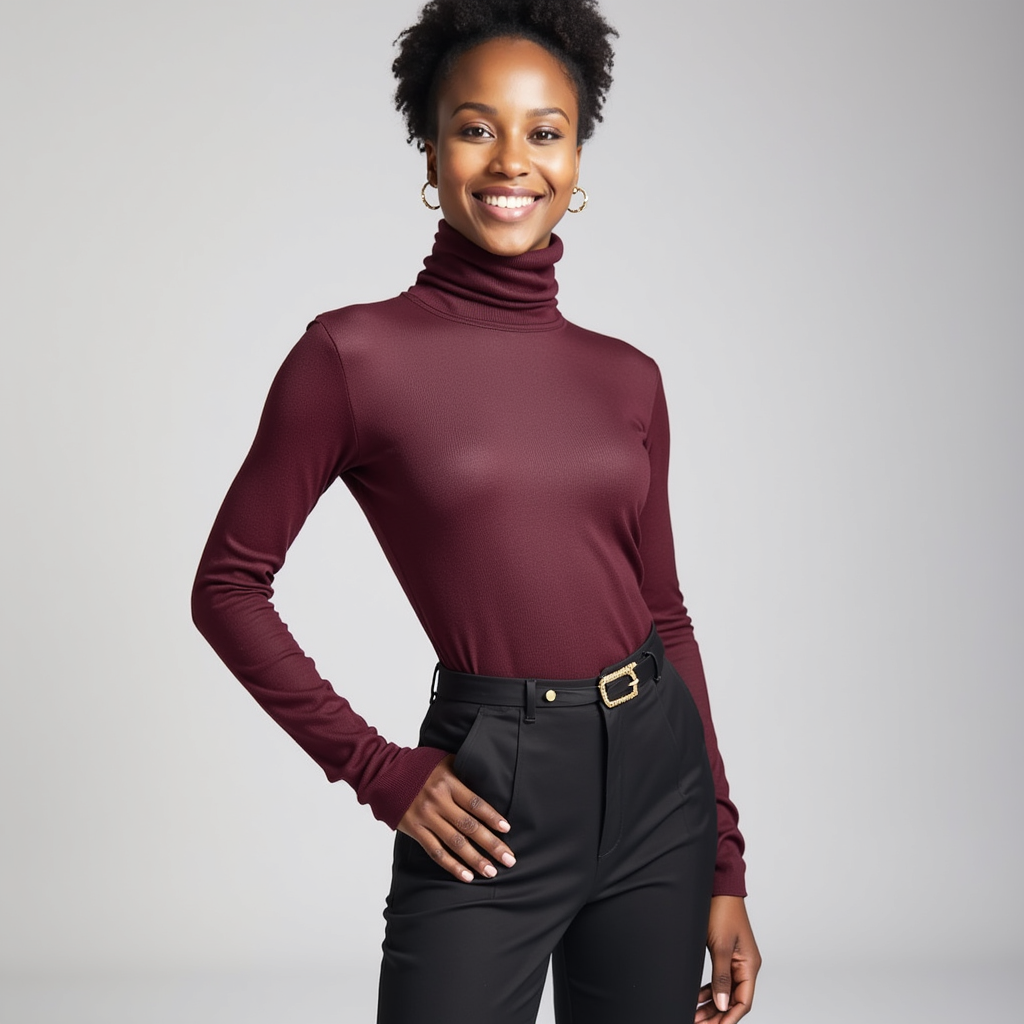 Le Col Riche Bordeaux se marie aussi bien avec un pantalon taille haute qu’une jupe élégante. Sa teinte profonde et féminine permet de créer des associations audacieuses ou sobres selon votre humeur. Il devient ainsi une pièce maîtresse de votre garde-robe d’automne-hiver.