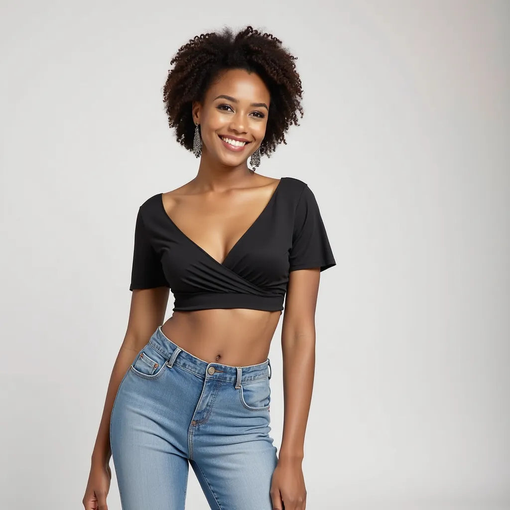Le haut "Élégance Minimaliste" se distingue par sa coupe croisée et son décolleté plongeant, apportant une touche de sensualité raffinée. Sa longueur crop met subtilement en valeur la silhouette, parfaite pour une allure audacieuse et tendance.
