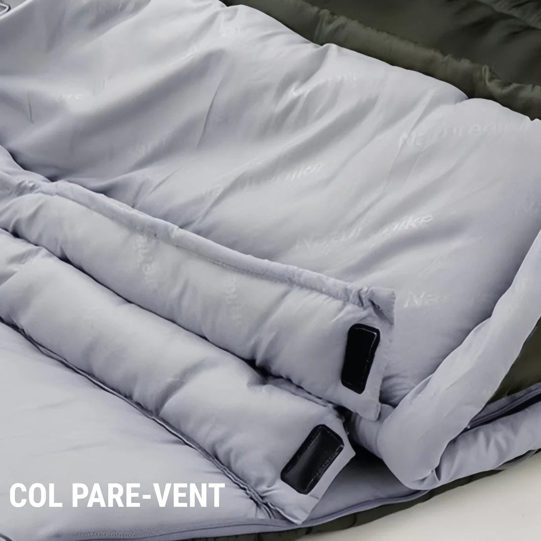 Sa forme enveloppante suit la silhouette du corps sans l’encombrer. L’isolation est bien répartie pour éviter les zones froides, offrant ainsi une chaleur homogène durant toute la nuit.