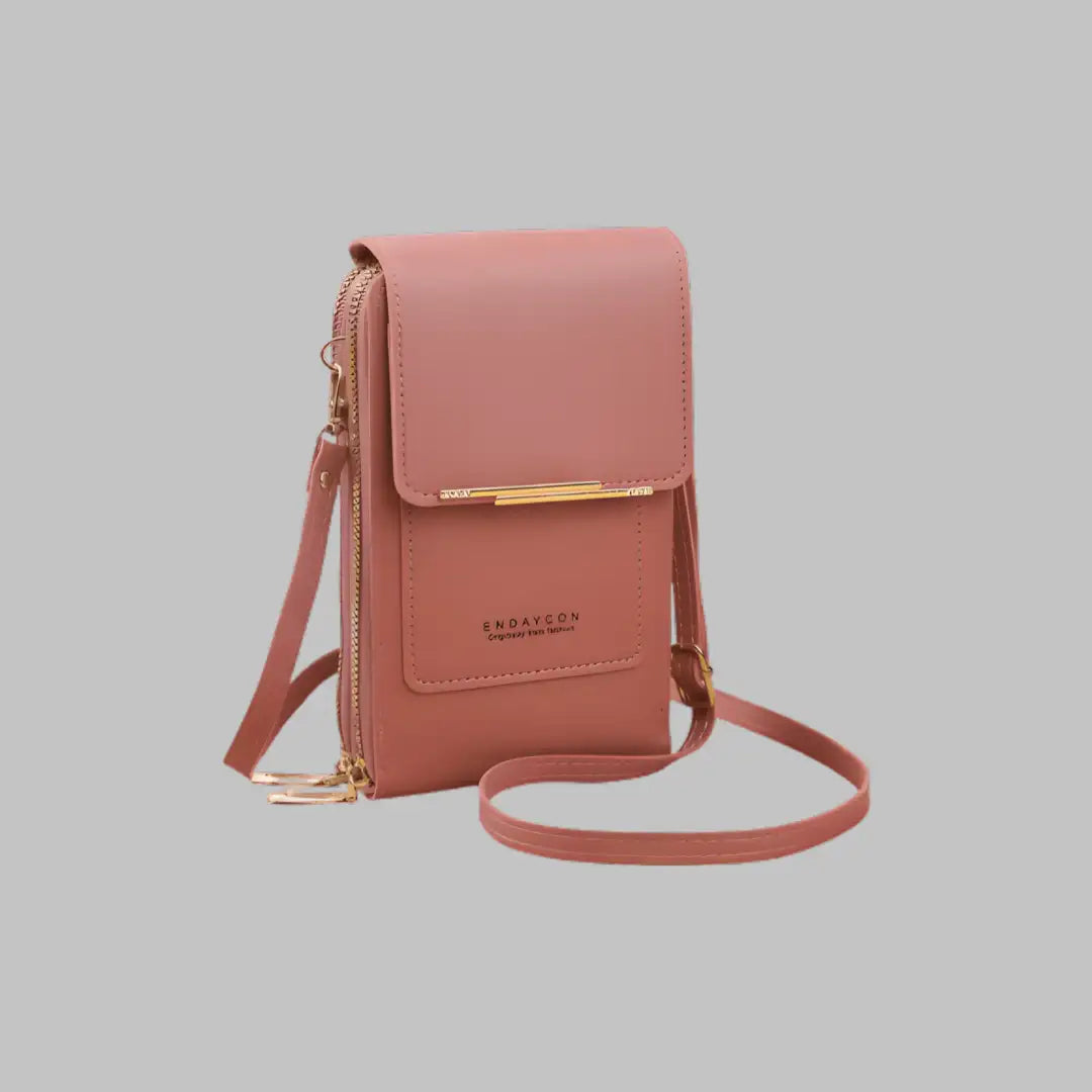 L’intérieur est compartimenté pour accueillir smartphone, cartes, billets, monnaie et petits objets sans désordre. Les emplacements pour cartes et la poche zippée facilitent l’accès rapide, tandis que la bandoulière réglable et amovible permet un port confortable en travers du corps ou en pochette.